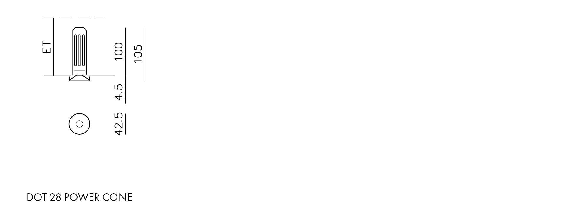 2772_ _ _DOT 28 POWER CONE | Halbeinbauleuchte für Einbau in SYSTEM DOT 28, aus massivem Aluminium, passive Kühlung beachten, Einbautiefe ET = Moduleinbautiefe + 60 mm außer bei Kapseln