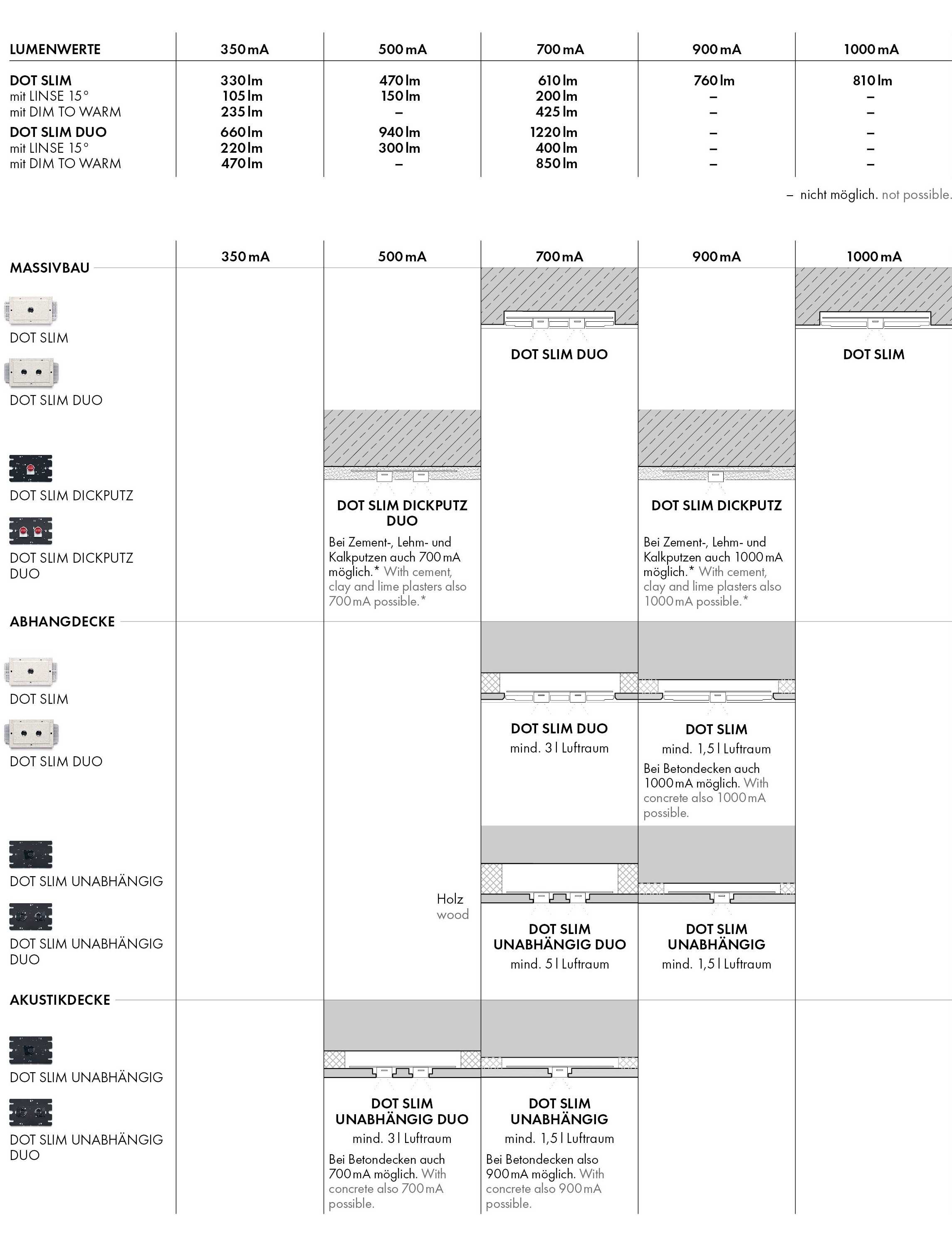 Seamless transitions from brightness to atmospheric candlelight: With a perfect dimming curve, high light brilliance and high colour rendering (RA96), SYSTEM DOT SLIM creates undreamt-of atmospheres. No further wiring or controls required. ATTENTION: cannot be combined with LENS 15°